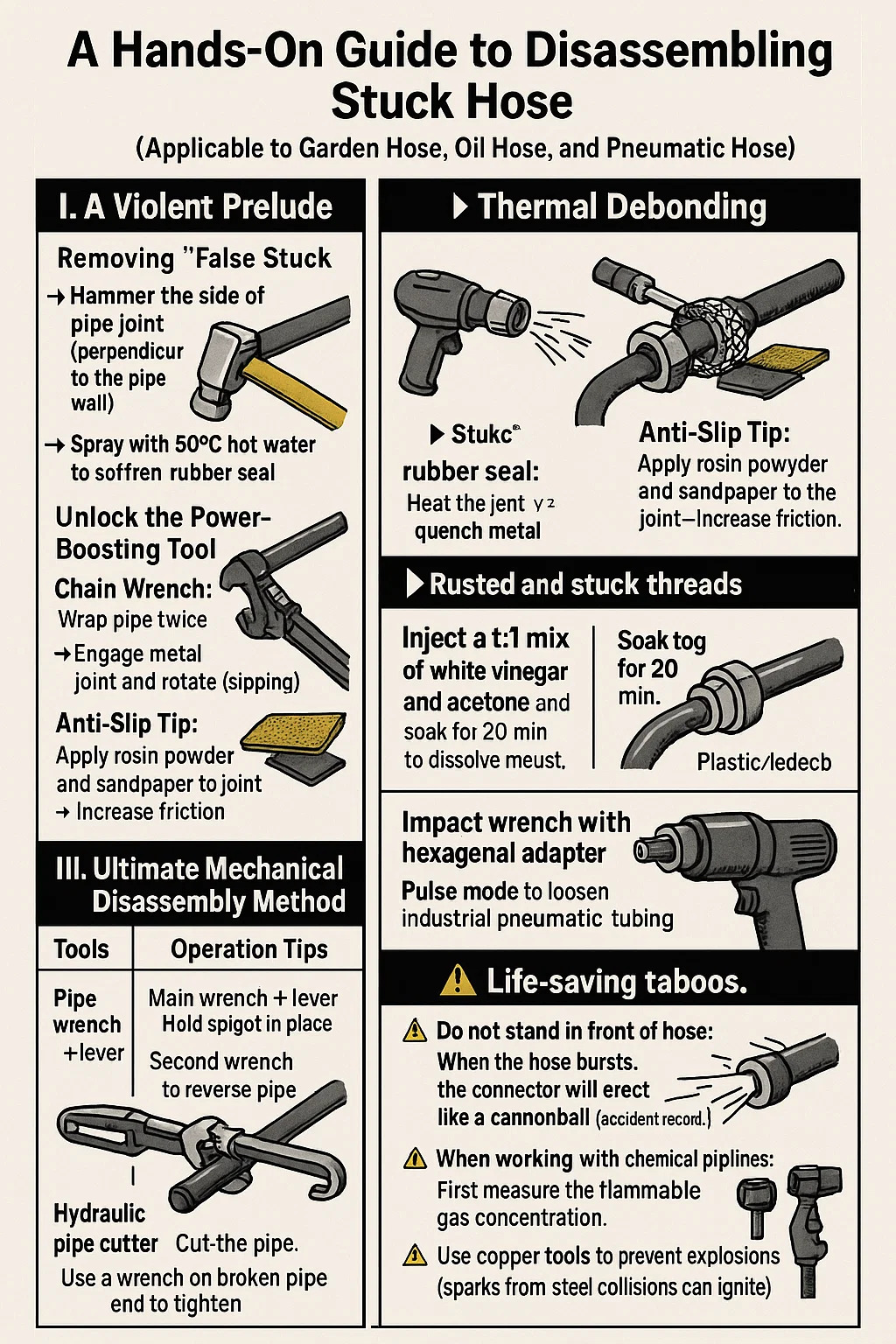▶ Zaseknuté gumové tesnenie: Zahrejte kĺb tepelnou pištoľou na nízkom nastavení po dobu 15 sekúnd → Použite ľadové balenie na ochladenie kovu → zmršťovanie a oddeľte gumu.