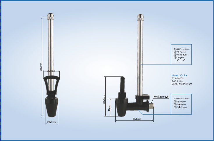 Tento nástavec umožňuje vedieť, koľko vody pridať jednotka z nehrdzavejúcej ocele jednoduchšie. Vysoko kvalitná konštrukcia. Sklenená alebo PC priezorová trubica si môže vybrať hrdlo komerčnej kvality.