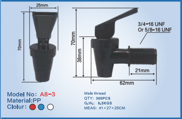 Sme dobre známi Dávkovač vody kohútik teplej studenej vody-a8-3 suppliers. Spoločnosť sa už dlhé roky zameriava na vývoj a výrobu príslušenstva k pitnej vode a plastových výrobkov. Hlavné produkty predstavujú viac ako 60% podielu na domácom trhu a spolupracujú s mnohými výrobcami a vyvážajú sa do Indie, Turecka, Spojených arabských emirátov, Nemecka, Talianska, Švédska, Austrálie, Argentíny, Ruska a ďalších ázijských, európskych, amerických , krajiny Blízkeho východu. Poskytuje vybavenie a technickú podporu pre viac ako 1000 známych výrobných podnikov (zariadenia na pitnú vodu) doma iv zahraničí a udržiava dlhodobé partnerstvo. Robíme aj veľkoobchod custom Dávkovač vody kohútik teplej studenej vody-a8-3.